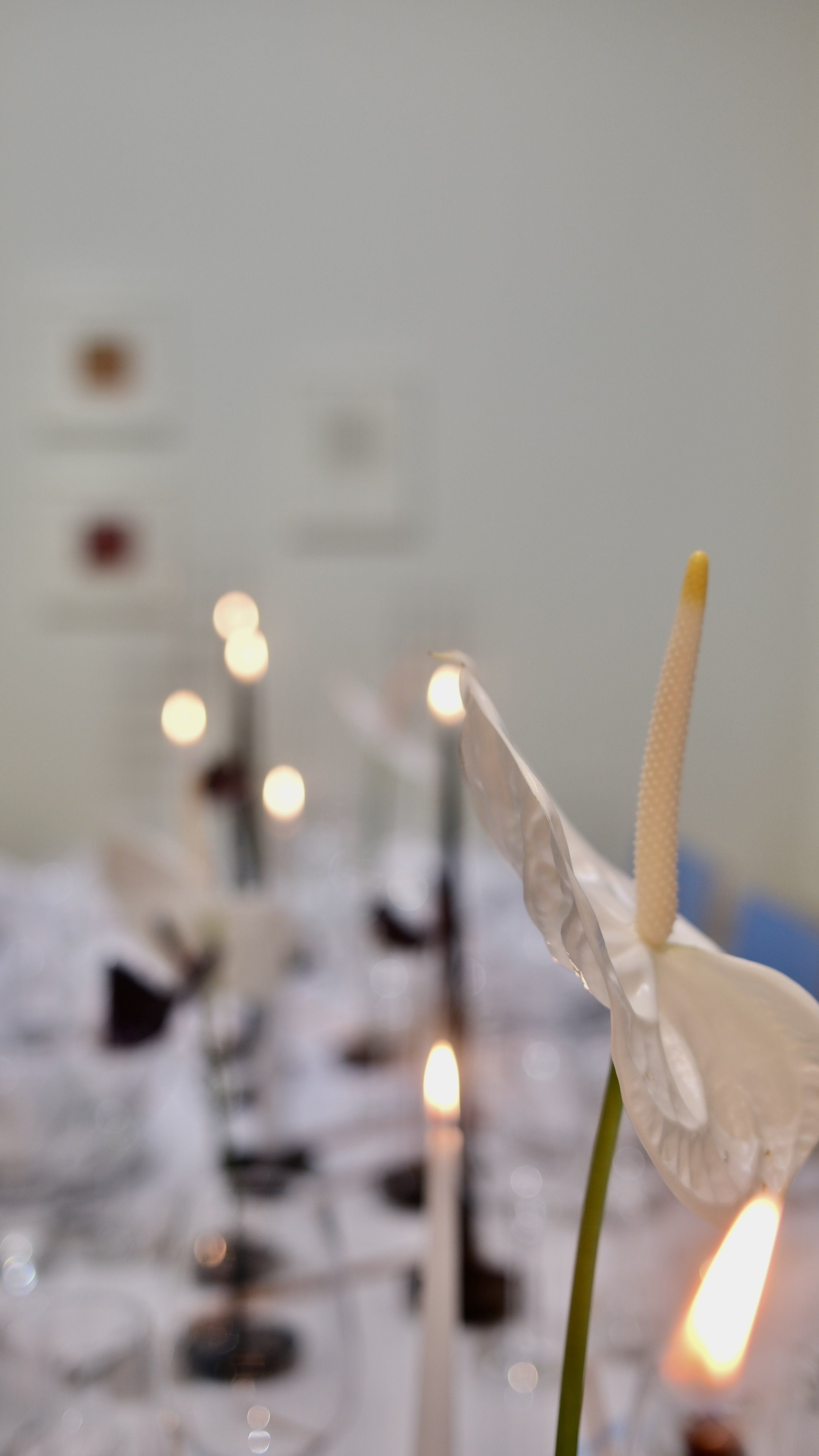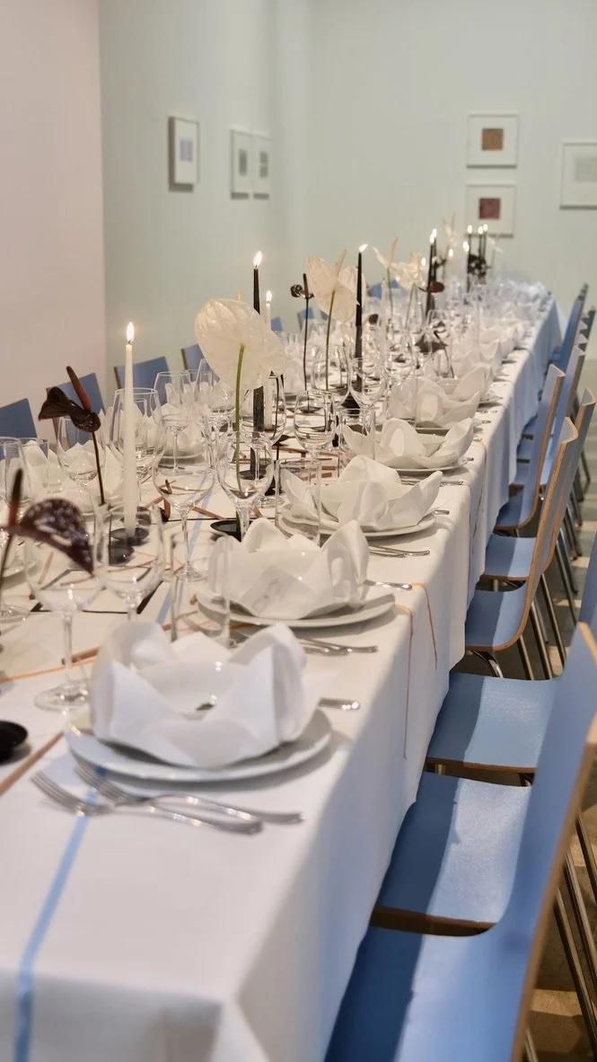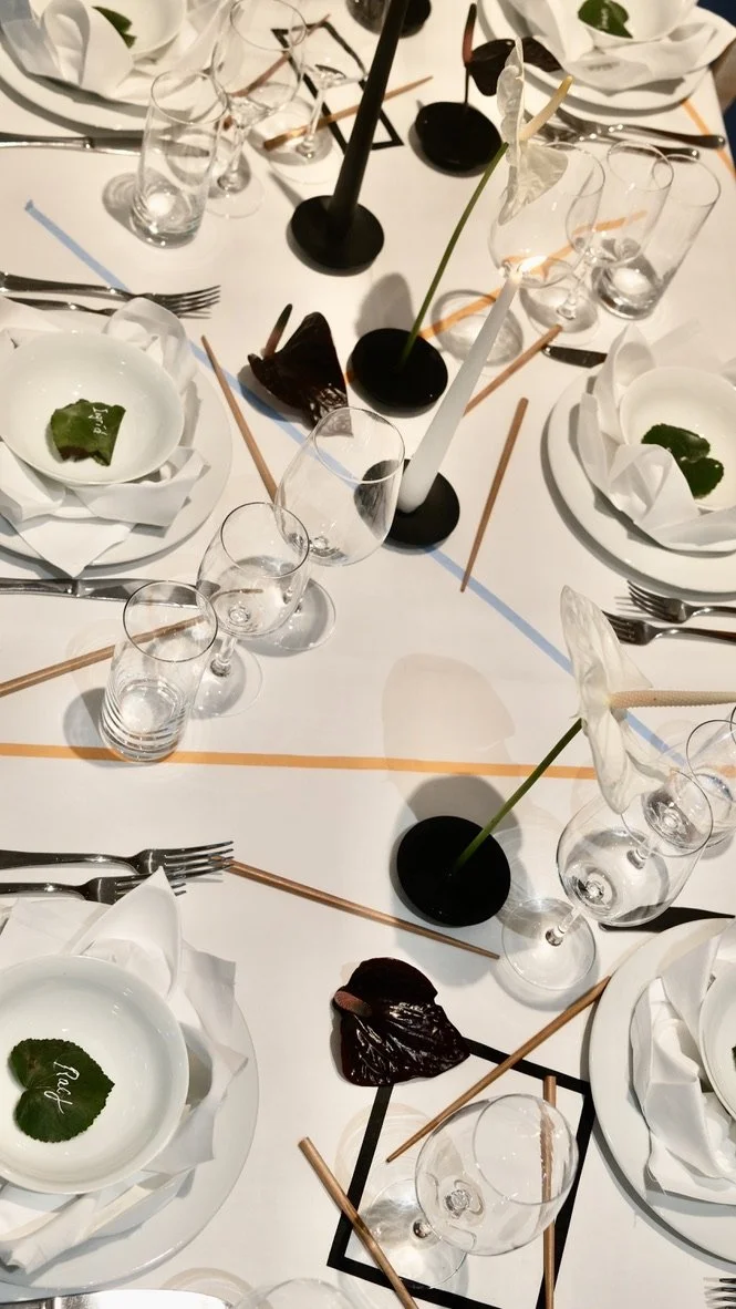 Für die Galerie Lohaus Sominsky wurde ein exklusives Vernissage Dinner inszeniert, bei dem Werke der Künstlerin Vera Molnar (1924–2023) gezeigt wurden. Die Tischgestaltung nahm das Spannungsfeld ihrer Arbeiten zwischen geometrischer Perfektion und subtilen Unregelmäßigkeiten auf und übersetzte es in ein atmosphärisches Erlebnis.